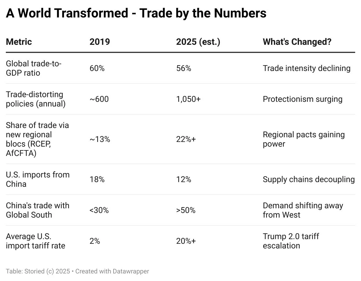 Rule Fragmentation: The WTO’s multilateral framework is weakening. From 2020–2023, trade-distorting policies increased by 66%, while trade liberalization measures declined by 22%.